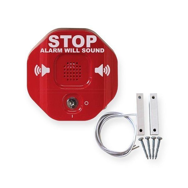 STI 6402 Exit Stopper deuralarm voor dubbele deuren blijven helpen bij het oplossen van de problemen van ongeoorloofde in- en uitgangen van brand- of nooddeuren. Het multifunctionele deuralarm knippert terwijl het een akoestisch alarm afgeeft, wat helpt om de aandacht te trekken en onrechtmatig gebruik van een beveiligde deur af te schrikken. Het zeer effectieve alarm is eenvoudig te installeren en de vorm van het stopbord is een andere manier om misbruik te voorkomen. Wanneer geactiveerd, klinkt er een waarschuwingsalarm en knippert de LED. Een door een sleutel bediende onderdrukking zal het alarm dempen en geautoriseerde uitgangen mogelijk maken.