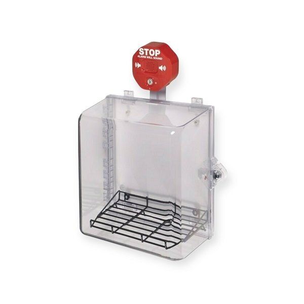 STI-7533AED AED beschermkast met montageplaat met alarm en strobe. Polycarbonaar kast t.b.v. AED ( Automatische externe Defibrillator). Beschermt tegen vandalisme en omgeving invloeden zoals stof. diefstal en vandalisme.
