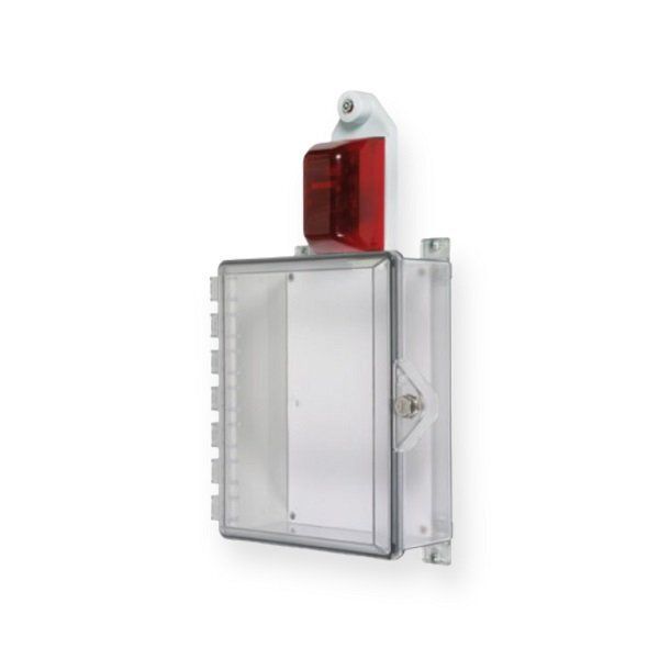 STI-7535 beschermende kast met sirene, flitseralarm en duimvergrendeling. Multifunctionele transparante UV-gestabiliseerde behuizingen van polycarbonaat bieden uitstekende bescherming voor een breed scala aan verschillende apparatuur, waaronder brand- en beveiligingscontrolepanelen tegen vandalisme en onopzettelijke schade.
