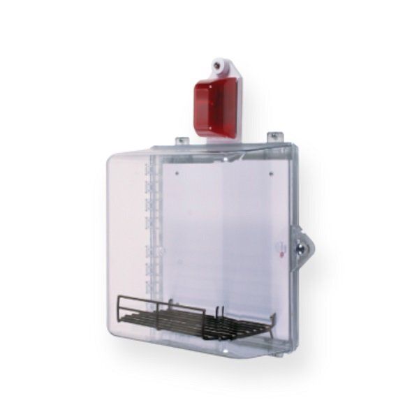 STI-7535AED AED-beschermkast met flits-/sirene-alarm en duimvergrendeling. Deze AED-beschermkasten zorgen ervoor dat AED-eenheden beschermd blijven, maar toch goed zichtbaar zijn in geval van nood. Ze kunnen aan de muur worden gemonteerd, zodat apparaten op een centrale locatie kunnen worden opgeborgen en er kunnen reanimatieaccessoires in worden ondergebracht. Deze kasten zijn beveiligd met een duimslot, waardoor directe toegang mogelijk is. Om nog meer bescherming te bieden tegen verkeerd gebruik, vandalisme en accidentele schade, zijn deze modellen uitgerust met een sirene en stroboscooplicht, waardoor de aandacht direct op het gebied wordt gevestigd.