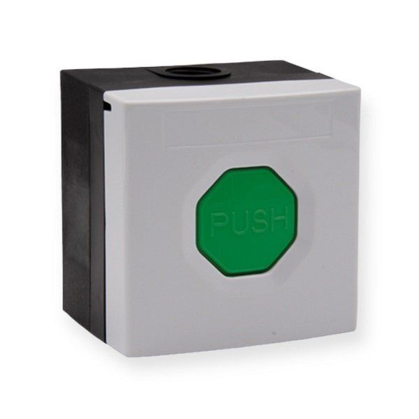 STI pneumatische pulsdrukker, wit met groene knop SS3-7G60. StopperLatch Pneumatic-modellen zijn voor toepassingen waarbij kortstondig duwen en loslaten vereist is, met een houdsignaaltimer. Pneumatisch instelbare timer opent of sluit een circuit en heeft een getimede vertraging voordat het wordt gereset. Geen elektriciteit om te werken.