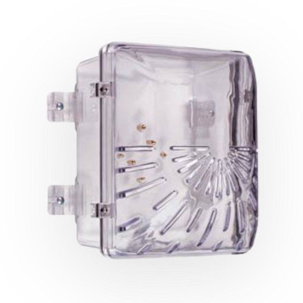 STI-1210D beschermkap sounder strobe inclusief opbouwrand type D. Deze onverwoestbare beschermkappen van polycarbonaat (met sleuven voor hoorn- of luidsprekerunits) zijn ontworpen om vandalisme en onopzettelijke schade te voorkomen. Gegoten van helder, dik, UV-gestabiliseerd polycarbonaat materiaal. Er zijn veel stevige, doorzichtige afstandshouders beschikbaar voor grotere stroboscoop-/hoornunits, retrofits, opbouwmontage en weerbestendige toepassingen.