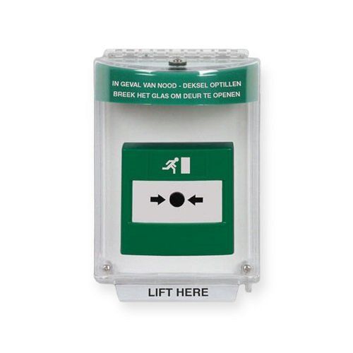 STI 13020-NL inbouw afdekkap handmelder met sirene. STI13110EG/NL weerbestendige Stopper voor bescherming van opbouw handmelders, de Stopper groen en voorzien van Nederlandse tekst. De beschermdeksel helpt te voorkomen dat brandmelders kwaadwillig of per ongeluk in werking worden gesteld. De Stopper is gemaakt van duurzaam transparant polycarbonaat.