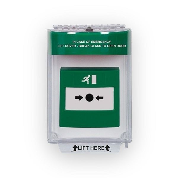 STI-13120EG universele opbouw stopper met sirene, groen label voor nooduitgang